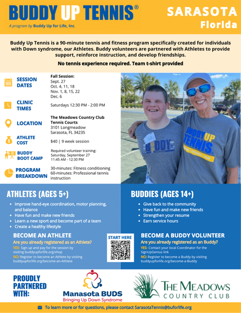 Manasota BUDS supplements some of the costs of Buddy Up Tennis for its athletes. Parents are responsible for a one-time cost of $40 for the multi-month program.