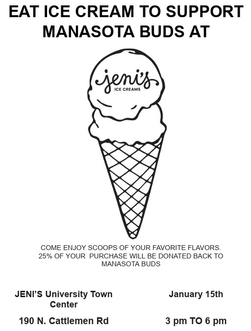 Come enjoy scoops of your favorite flavors. 25% of all purchases will be donated to Manasota BUDS.